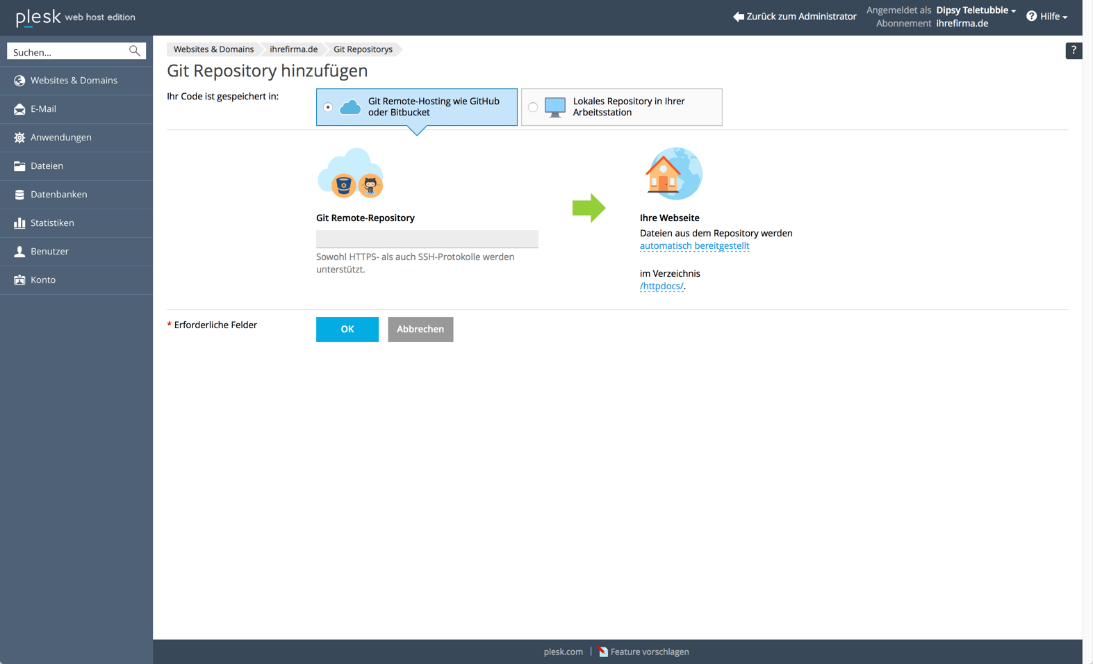 Für Entwickler eine schöne Sache und ganz leicht im Plesk eingerichtet.