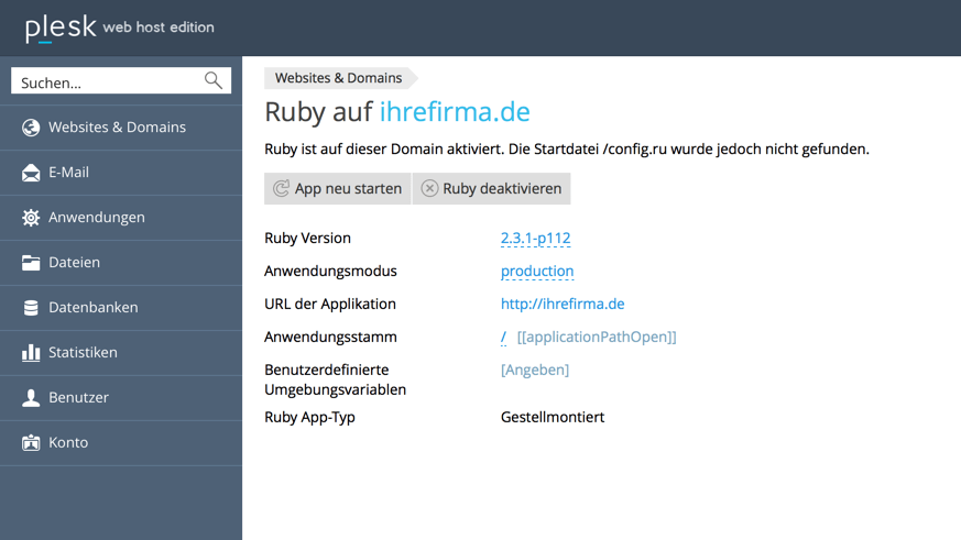 Ruby ist eine objektorientierte Programmiersprache. Bei Plesk besteht nun die Möglichkeit eigene Applikationen zu starten.