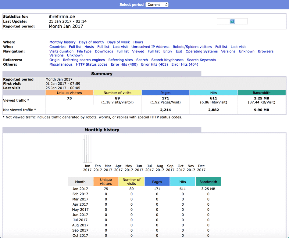 Die Webstatistiken geben ihnen eine gute Übersicht Ihrer Zugriffe auf Ihre Website mit Besuchern, verwendeten Browsern, die aufgerufenen Seiten und die Herkunft.