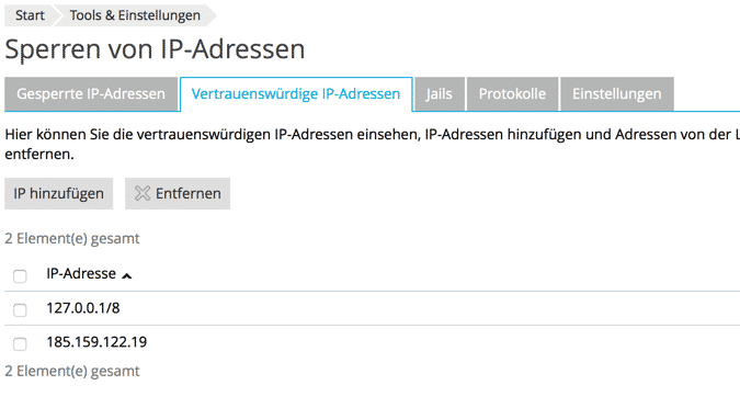 Natürlich kann man auch einzelne IP Adressen und Bereiche auf die White- oder Blacklist setzen.