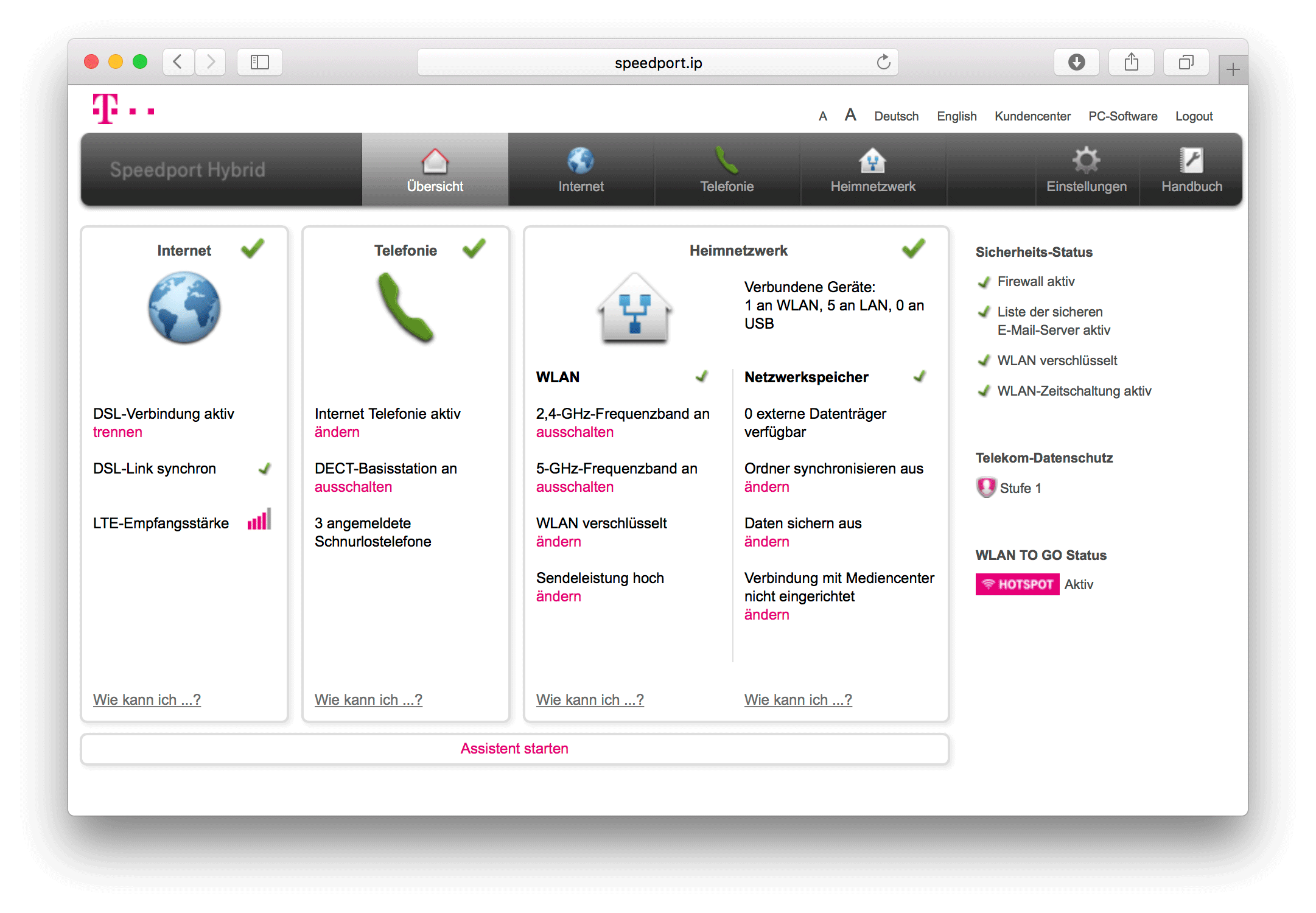 Die Logindaten stehen in der Regel unter dem Gerät. Wenn Sie sie nicht verändert haben können Sie direkt einloggen und sehen dann die folgende Übersicht.